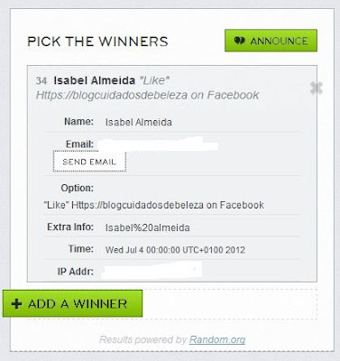 2. OI Isabel. Sim. Enviei-te email ontem a comunicar o resultado. Logo que possas envia-me a tua morada para te poder enviar o prémio. Beijinho
