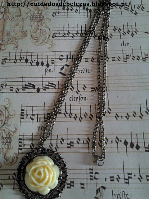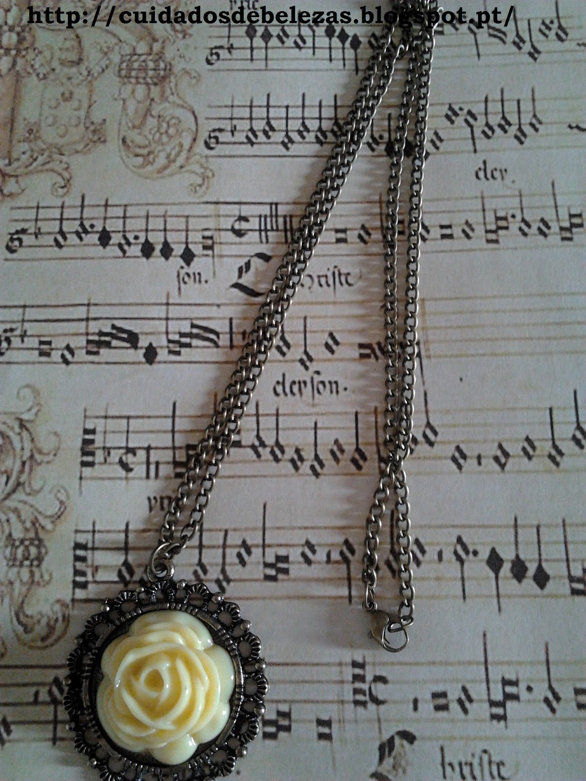 Um colar estilo vintage muito muito bonito. Gosto do estilo, da cor, e do material.