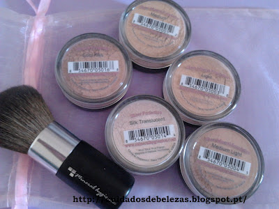 Recebi 3 bases de maquilhagem (nas cores Light, Medium e Medium Light), um bronzer (na cor Cool Kiss), um pó translucido (na cor Silk Translucent) e um pincel kabuki.