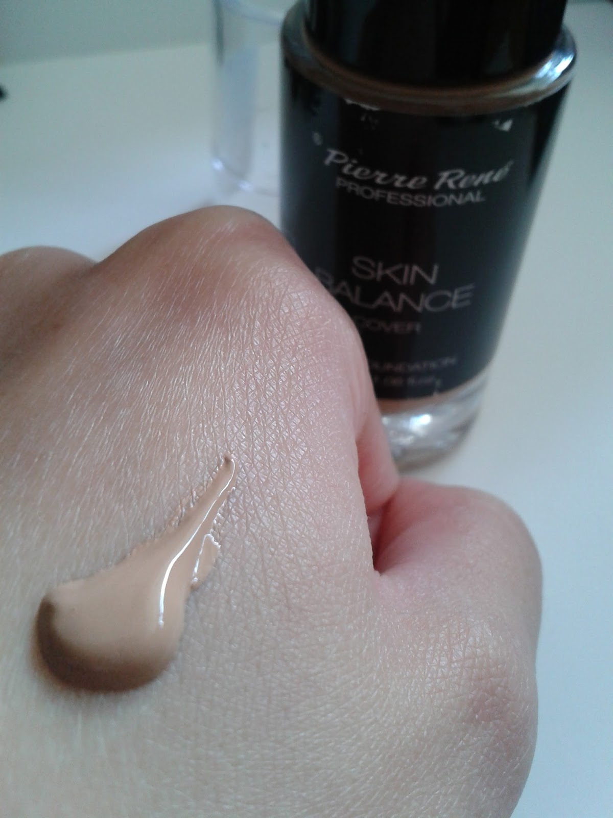 A minha base do momento e que estou a adorar usar é a skin balance da Pierre René. Uma base de textura fluída, que se espalha facilmente pela pele e que penetra com facilidade, dando um ar bastante natural ao rosto. Cobre bem as imperfeições e não resseca a pele, pois é bastante hidratante.