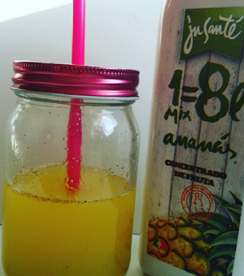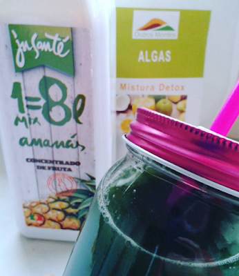 Aqui usei o sumo de ananás com a mistura detox Outros Montes (para desintoxicar) e vou bebendo ao longo do dia. Faço regularmente...